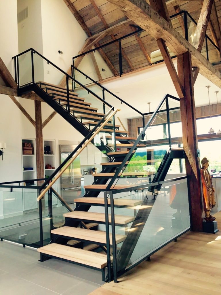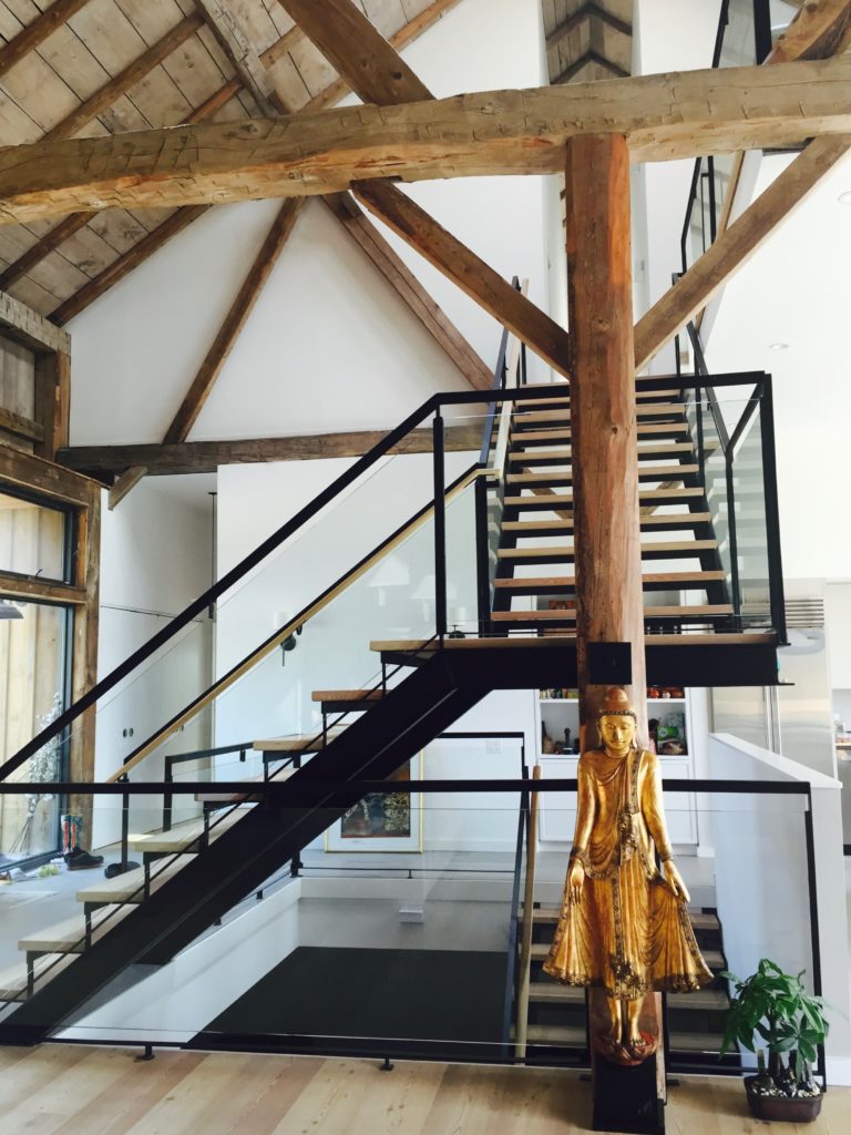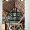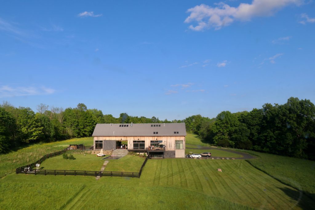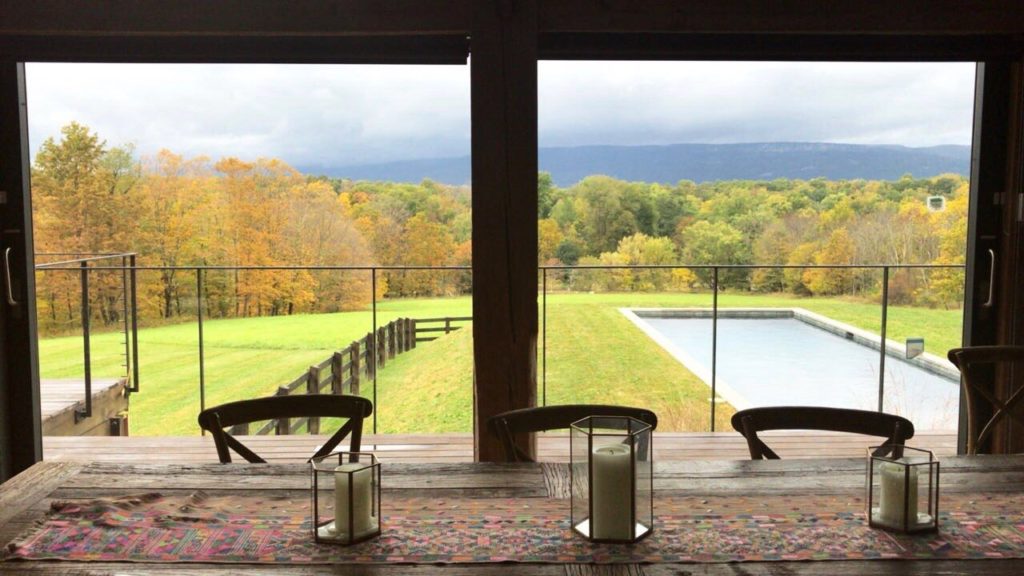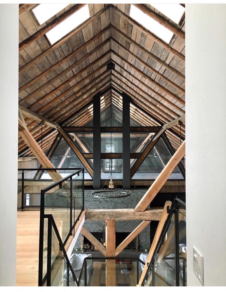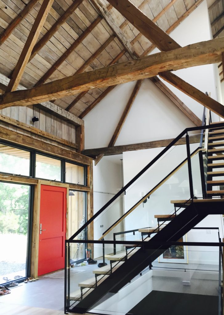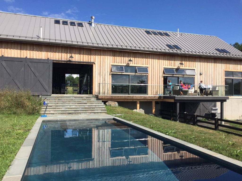 The client discovered this large barn, 100′ X 40′ built in late 1800’s in Wisconsin. The barn was dismantled, numbered and reassembled on a new site in upstate new york with sweeping views of the catskills. This new residence was built using the reclaimed beams of the original barn, reclaimed siding and SIPS (structurally insulated panels. The barn was built in 2 phases. Phase 1 was the main 3 bedroom residence, double height living and dining space, lower level media room, pool and open breezeway. The other side of the breezeway is the phase 2 build-out 2 bedroom guest suite.